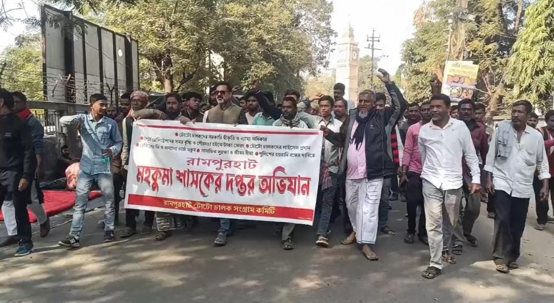রামপুরহাটে টোটো চালকদের ধর্মঘট ও ডেপুটেশন, ২৩ ডিসেম্বর সম্পূর্ণ টোটো বন্ধের ডাক।